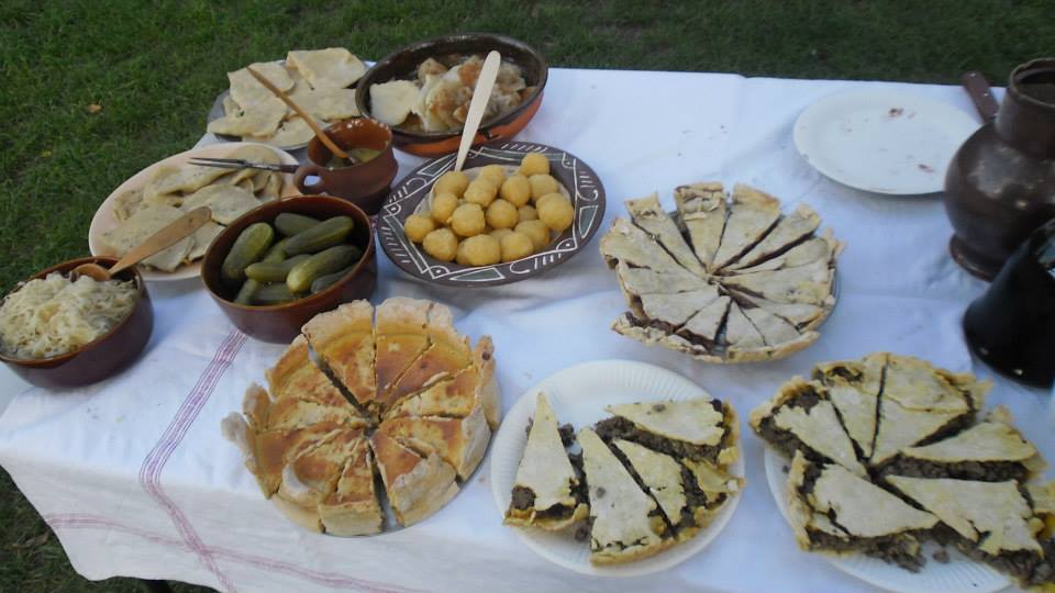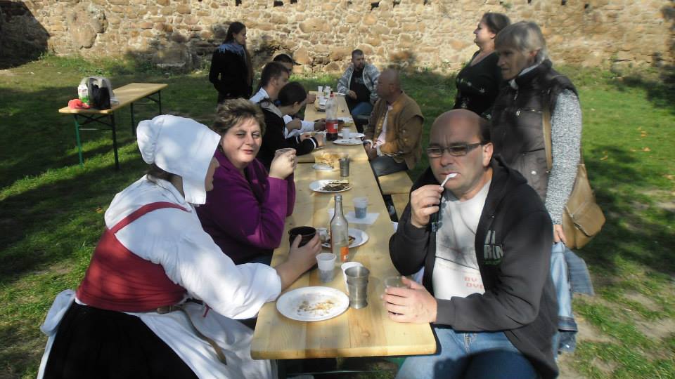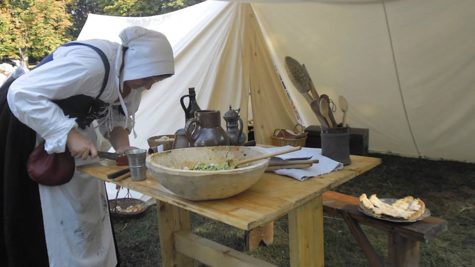 Podávalo sa naozaj množstvo jedál vychádzali sme z receptárov zo 16.storočia, ľudia tu mohli ochutnať syrový koláč, pečeňový koláč, koláč s jahodami, syrové guľky, placky plnené syrom, placky plnené gaštanmi (pečené aj varené), pečené mäso na víne, na mede, klobásy podľa dobového receptu...