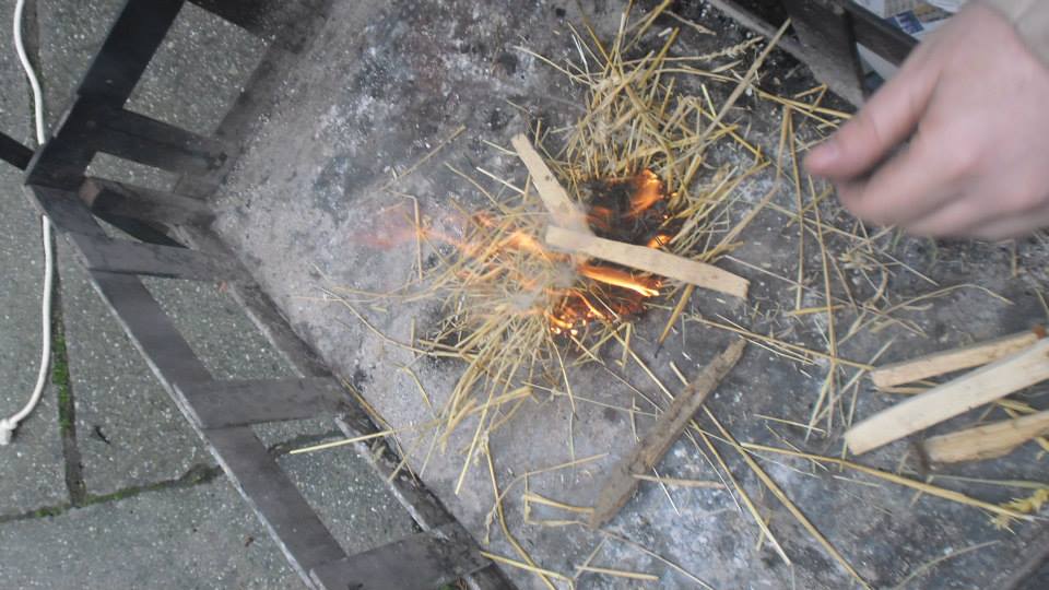 Oheň sme založili pomocou kresadla, práchna a slamy.