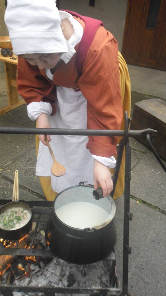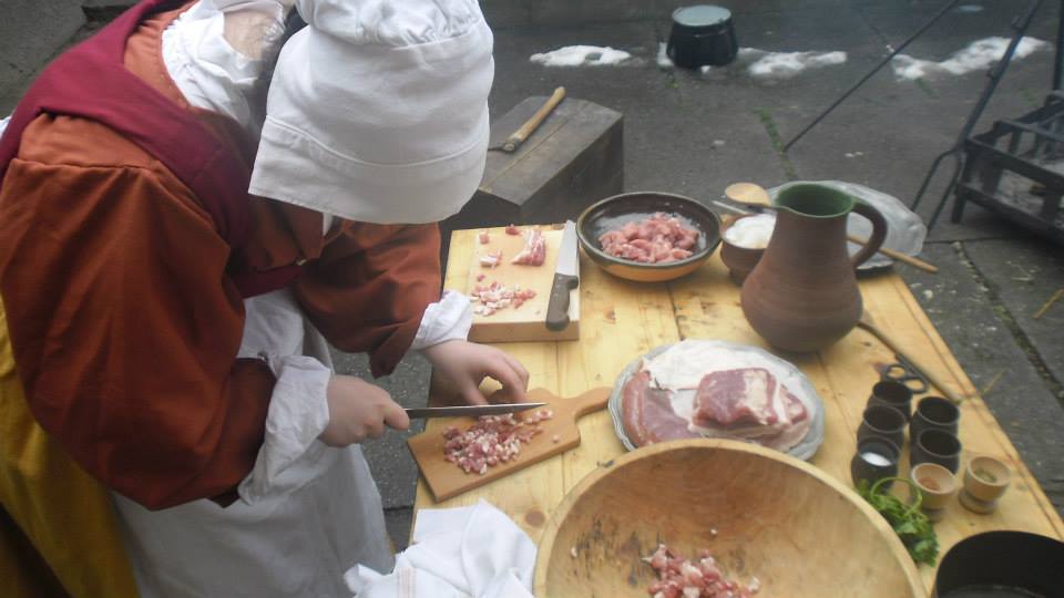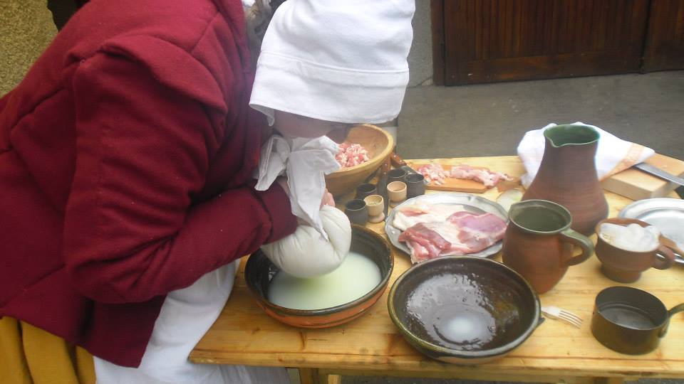 Cieľ: Dobovým spôsobom, podľa historických receptov, pripraviť syr z kravského mlieka, bravčové klobásy na údenie a popri tom prichystať niečo chutné na obed.