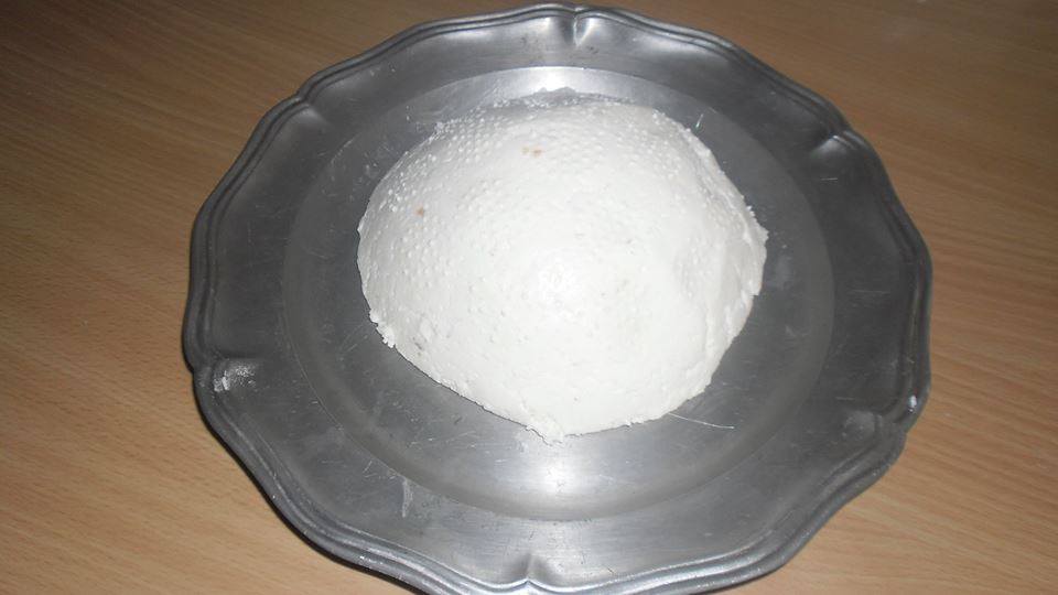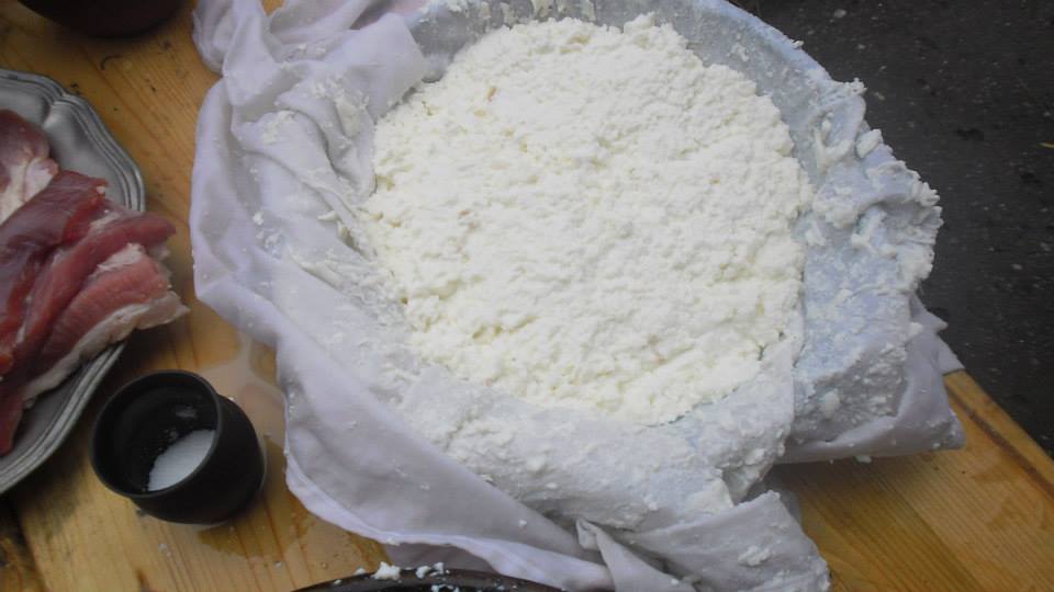 Tu pre nás nastal problém, keďže sme v sobotu ešte nemali formu na syr - zodpovedajúcu originálom používaným v našom období, použili sme jednoduché plechové cedidlo, aby odtial ešte mohla odtekať prebytočná tekutina a syr dostal pekný tvar.