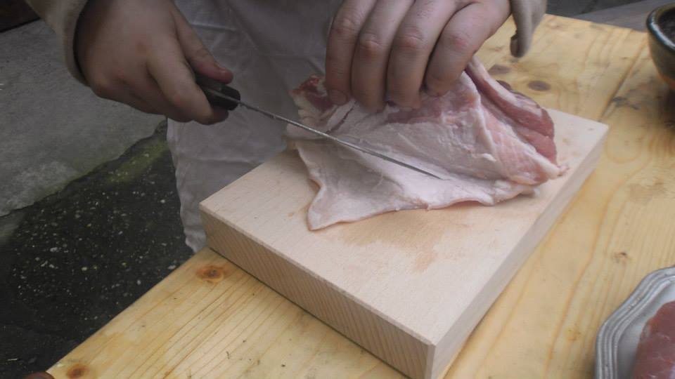 Do klobás sme použili 2kg bravčového boku, keďže je tu dostatok mäsa aj masti, aby sme dodržali recept.
