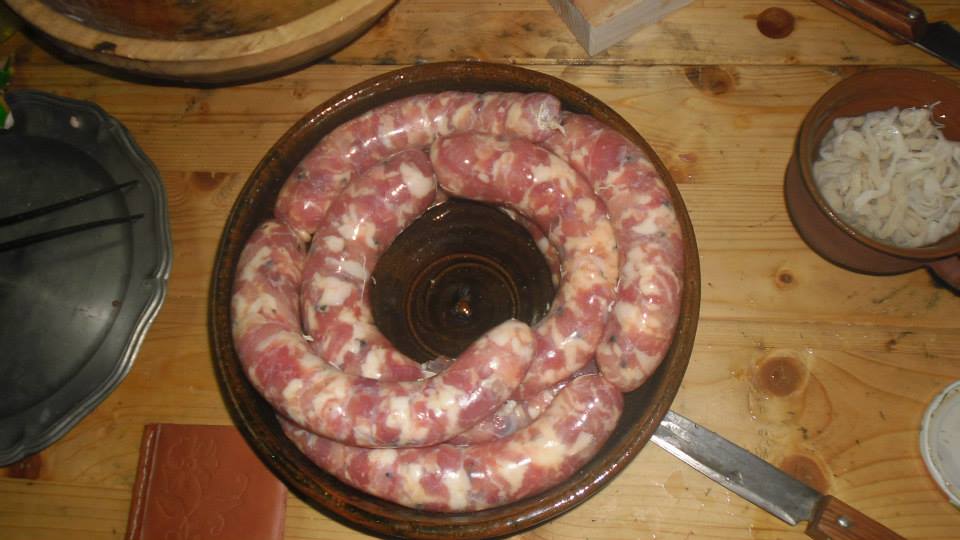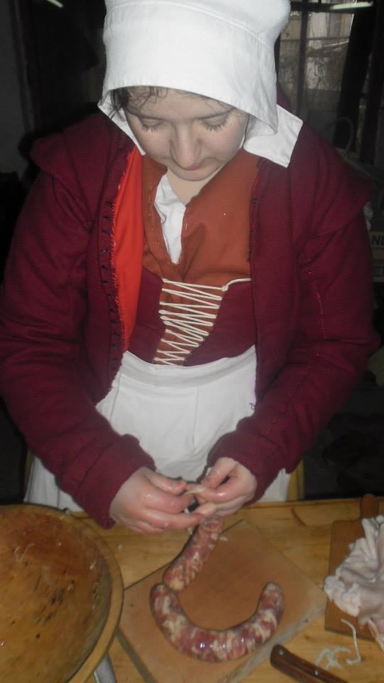 V ten istý deň sme pracovali aj na klobásach na nasledujúcu sezónu. Klobásy sme pripravili podľa receptu z knižky The good housewife´s jewel s malou obmenou, že sme namiesto hovädzieho mäsa použili bravčové, ostatné body receptu sme zachovali.